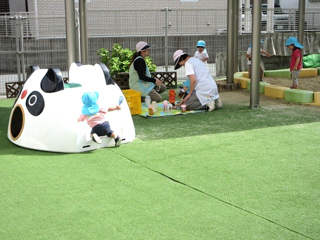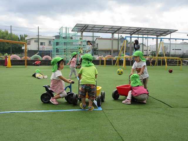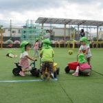 園庭に出たひよこ組、いちご組の子どもたちもずいぶんとたくましくなりました。