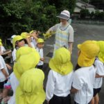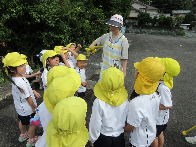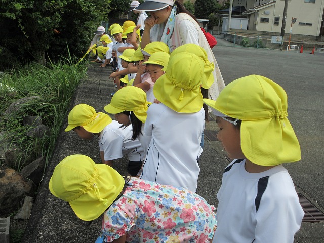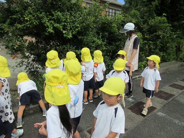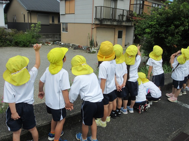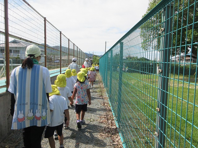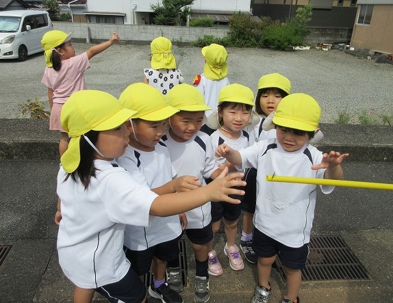 黄組の子どもたちとテニスコート近くを散歩しました。