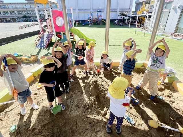 黄組の子どもたちが「園長先生に見てほしい!」と砂場で山を作ってくれました。
