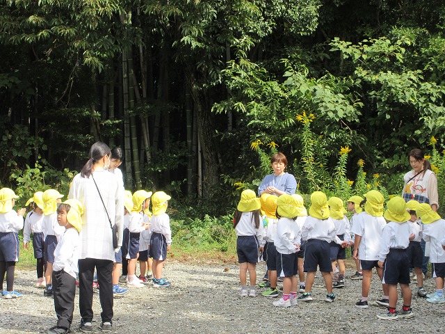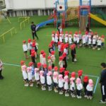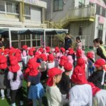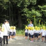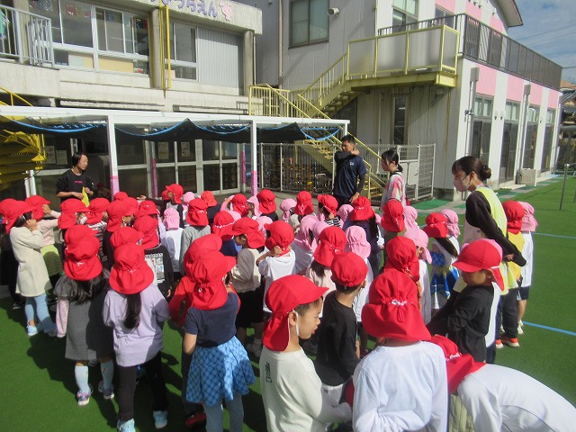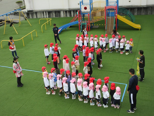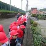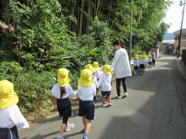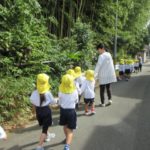 午前中早くに赤組と桃組の子どもたちが近所をお散歩しました。