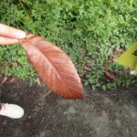 続いて黄組の子どもたちは大きなビワの葉を拾ってきました。
