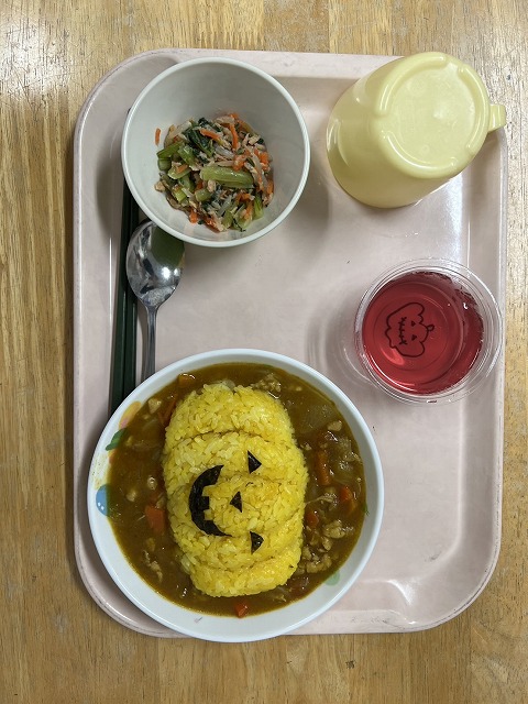 今日はハロウィンということで、給食にもたくさん工夫をしてもらいました。