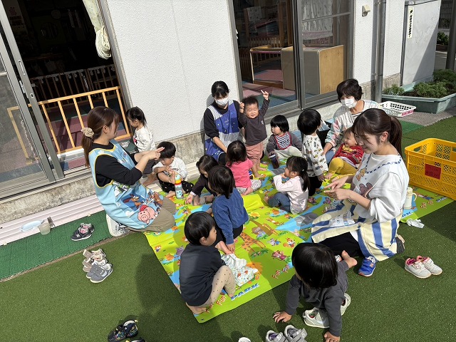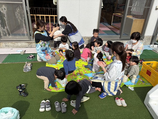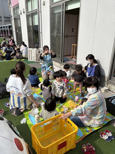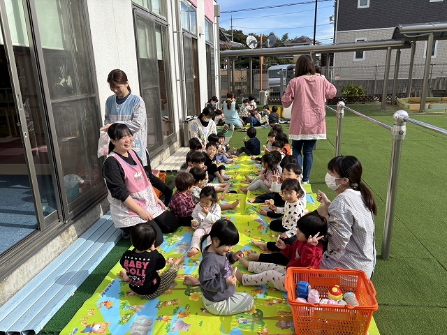 未満児の子どもたちは園でミニ遠足を楽しみ、以上児の子どもたちは市の防災センターとダイム球場を訪れました。