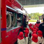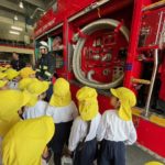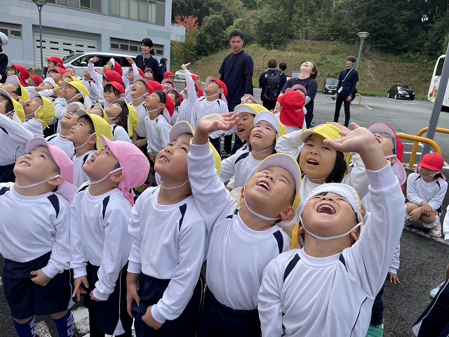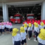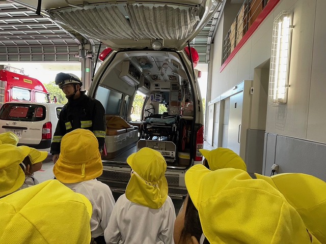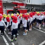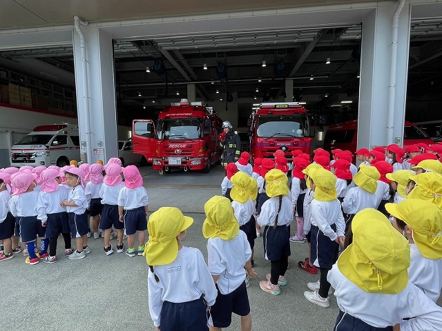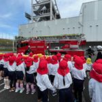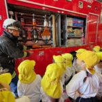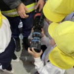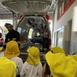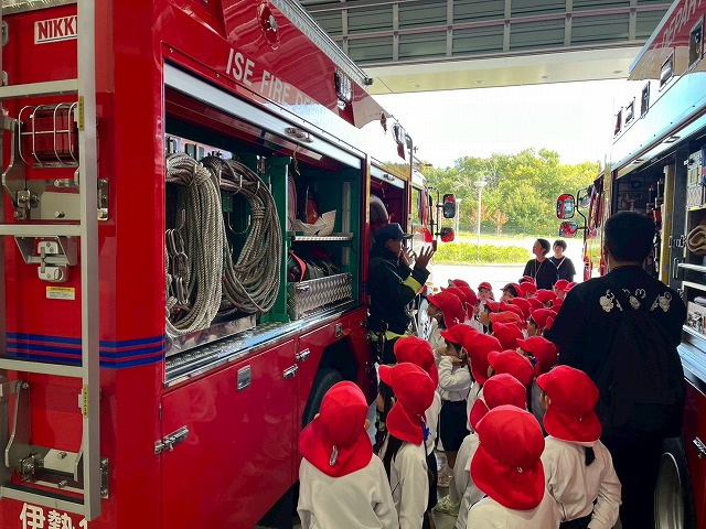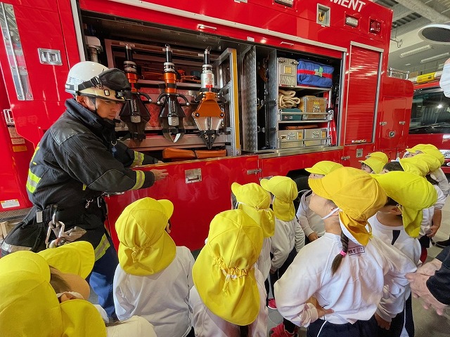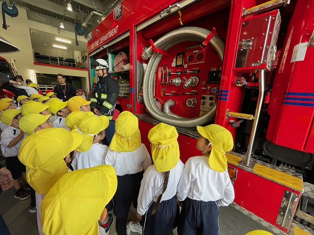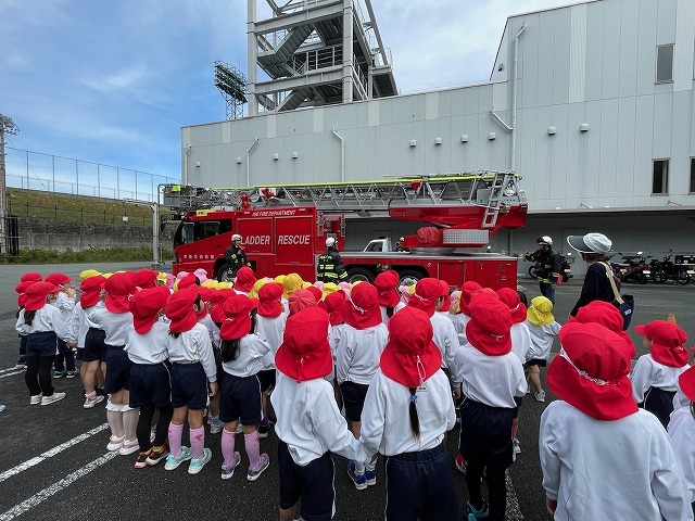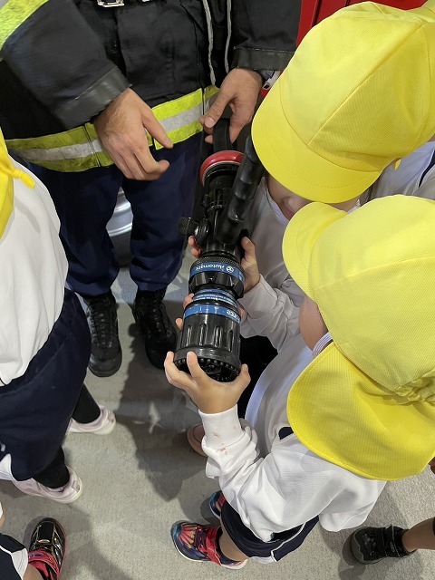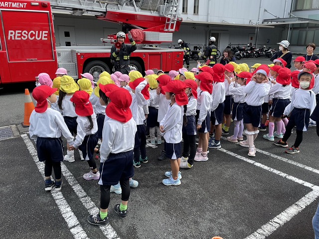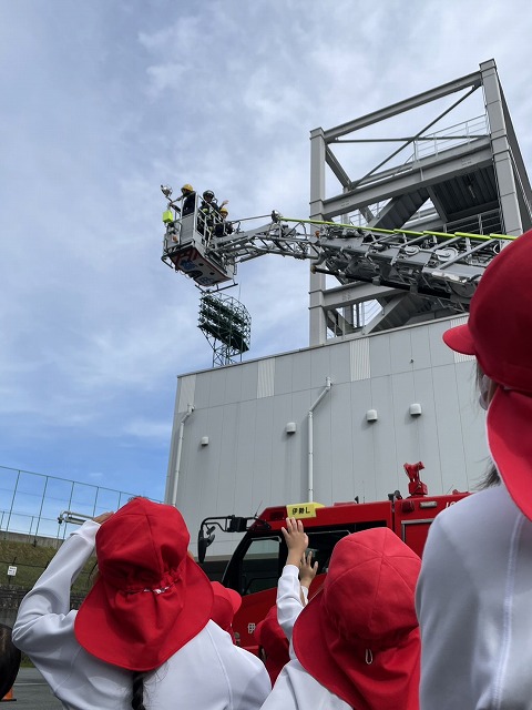 消防自動車を見学したり、クレーンはしごが動くのを見せていただいたりしました。