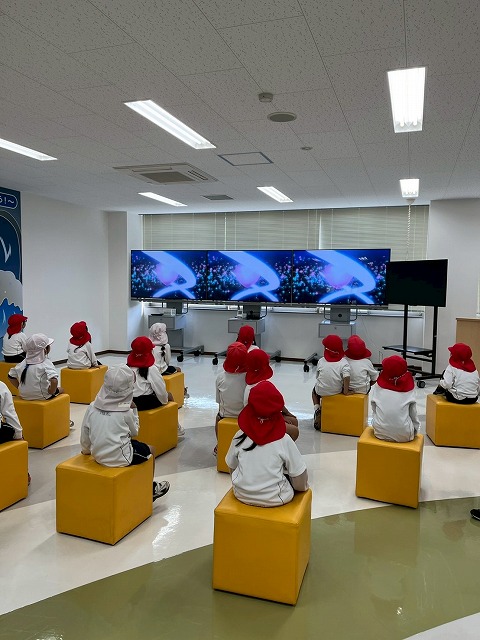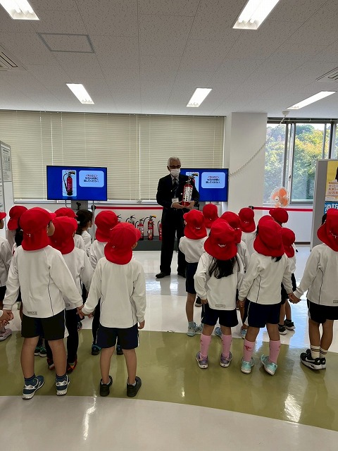 赤組の子どもたちは、防災センターの中で消火のことなどについて勉強もさせていただきました。