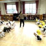 子どもたちはビニルテープのしっぽをとられないように、動き回りました。