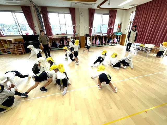 四つん這いになって、体幹を鍛えながらのしっぽとりでした。