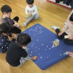 シール1枚1枚が星のようにも見えて、子どもたちそれぞれがイメージした世界が美しかったです。