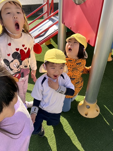 黄組の子どもたちが、園庭で「顔さがし」に挑戦しました。