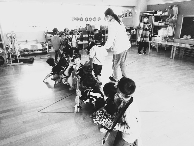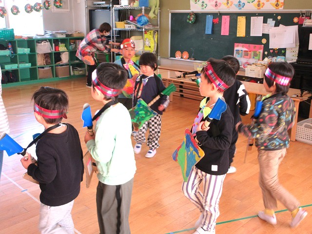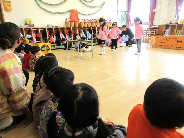 「おゆうぎ会」を来週にひかえて、ゆうぎや劇もとおし稽古の段階に。