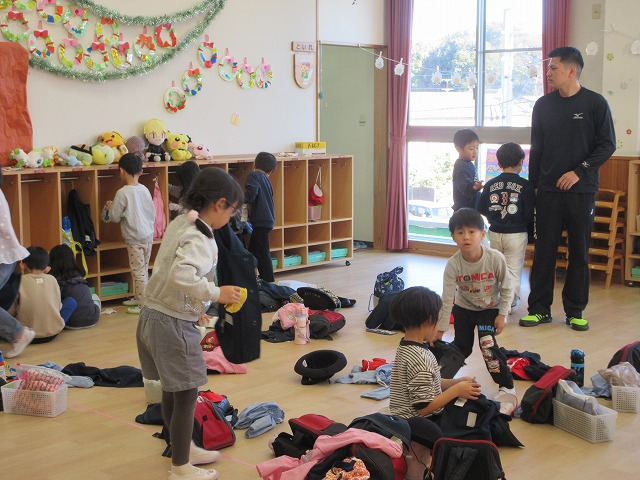 赤組の子どもたちが自分のロッカーの片付けに取り組んでいました。