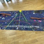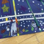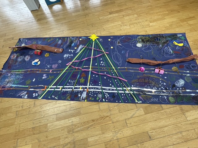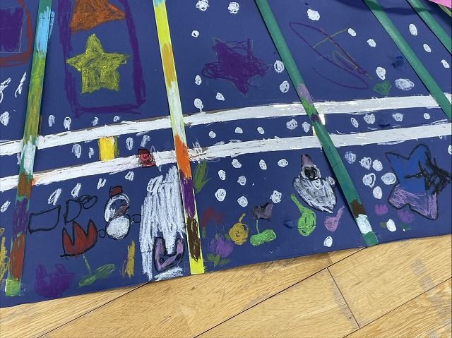 黄組の子どもたちは思い思いに冬のイラストを大きな画用紙に描いて楽しくすごしました⛄