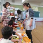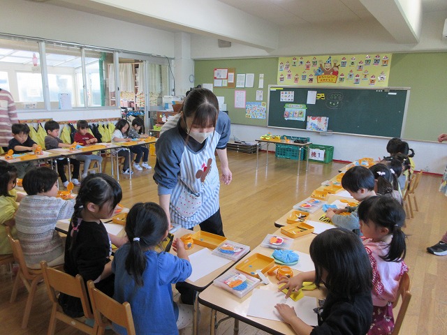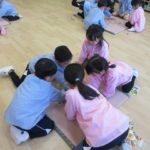 桃組の子どもたちが豆まきの入れものを作っていました。