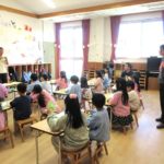 子どもたちが豆入れを折り紙で追っている様子を観ていただきました。