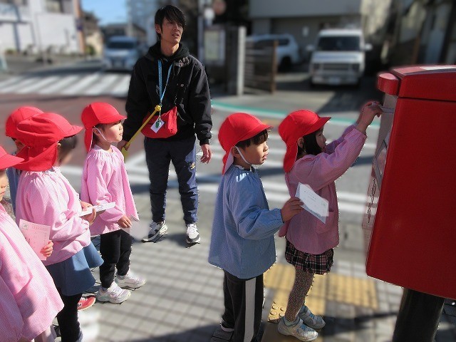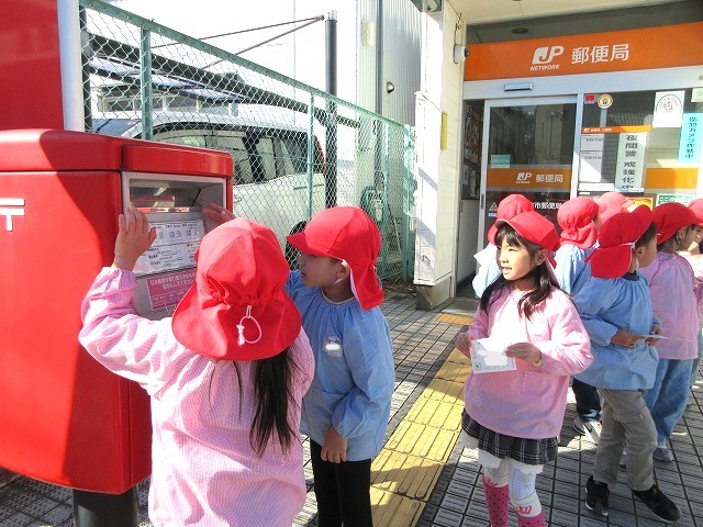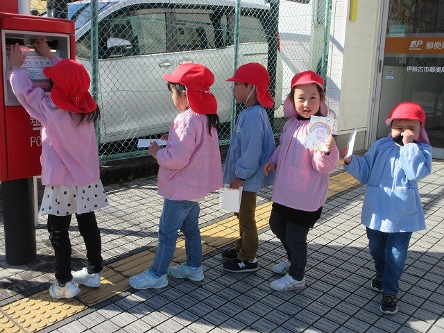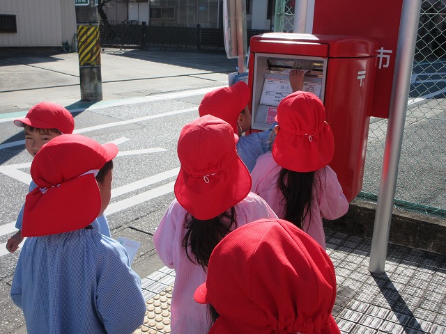 心を込めて仕上げたハガキをポストに入れて、晴れやかな表情の子どもたちでした。