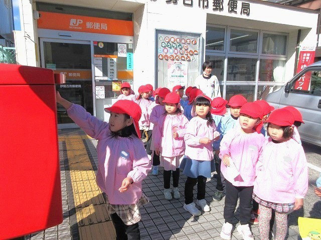 今日はみんなで「ほんもののハガキ」を古市郵便局に投函に行きました。