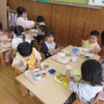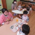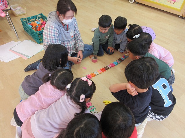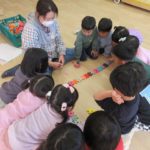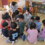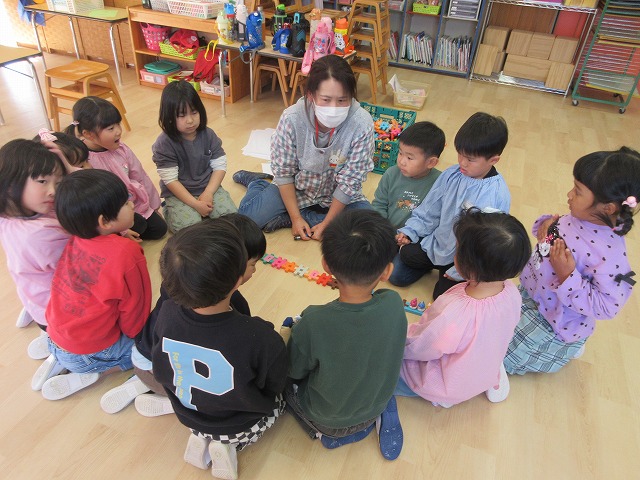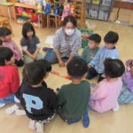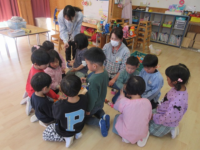 黄組の子どもたちはホールでクラスに分かれて活動中でした。
