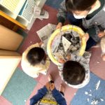 新聞紙をちぎったり、丸めたり。