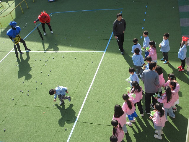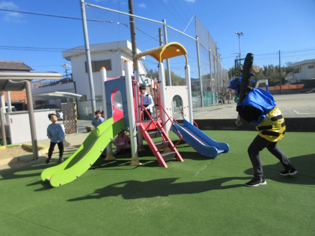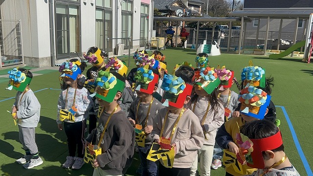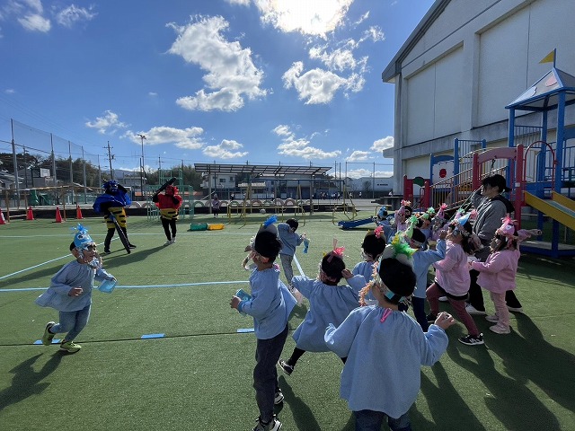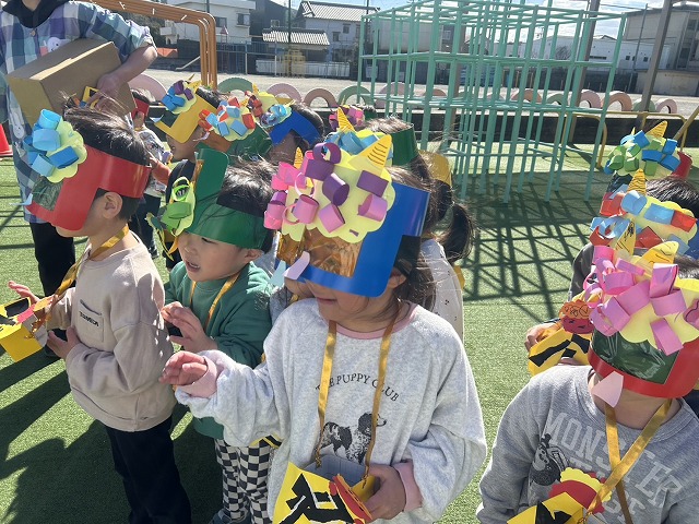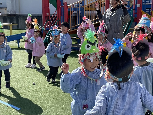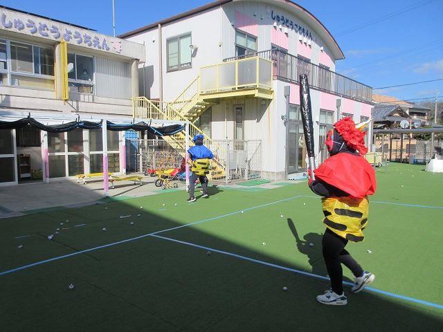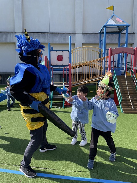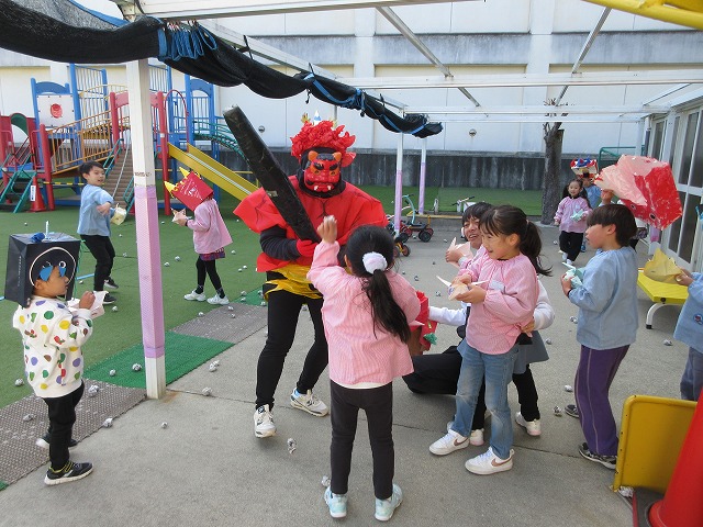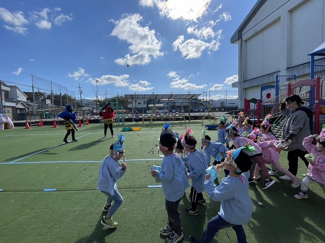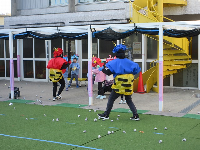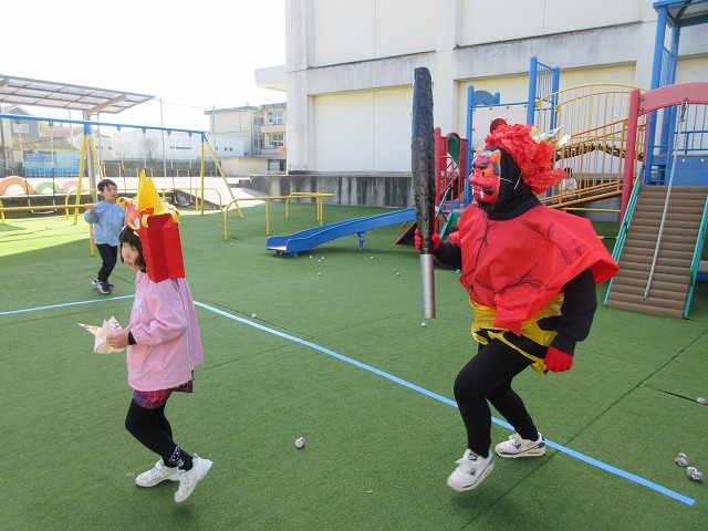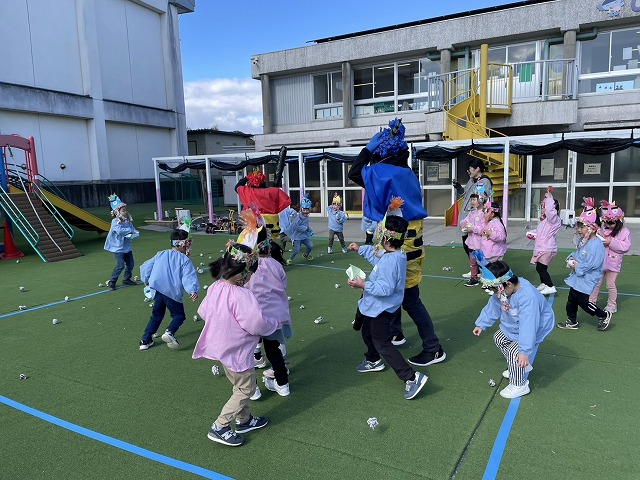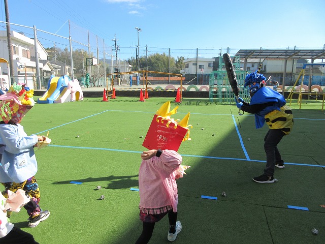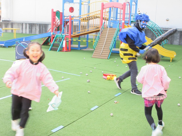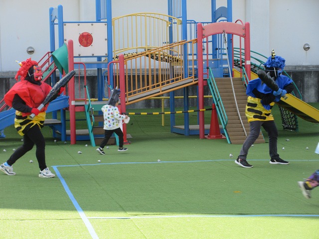以上児の子どもたちは鬼退治に一生懸命でした。