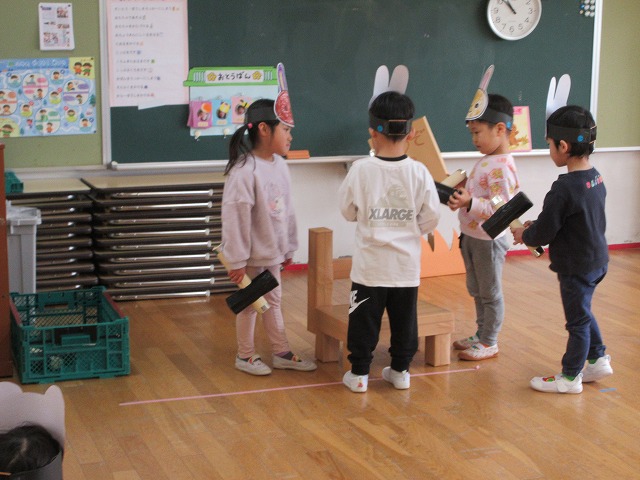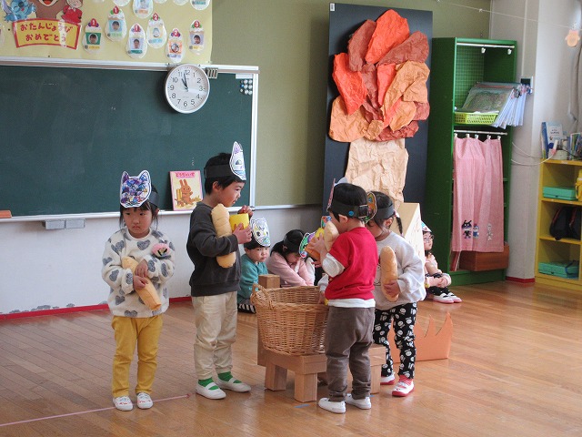 ストーリーがとても温かくて桃組の子どもたちにぴったりの劇でした。