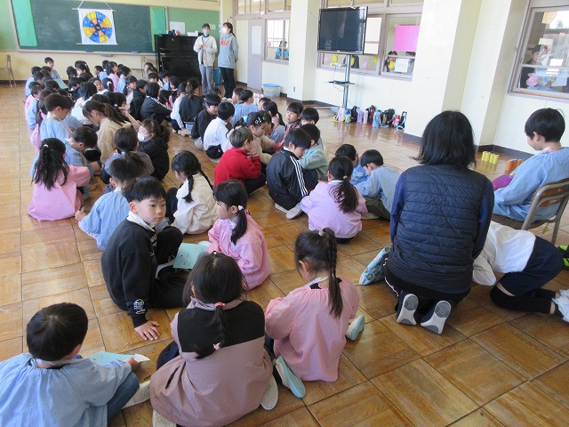 1年生の子どもたちがホスト役として会の進行や読み聞かせ、合奏、校舎案内をしてくれました。