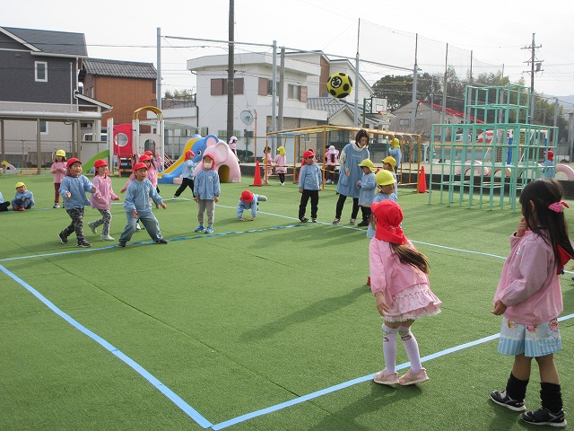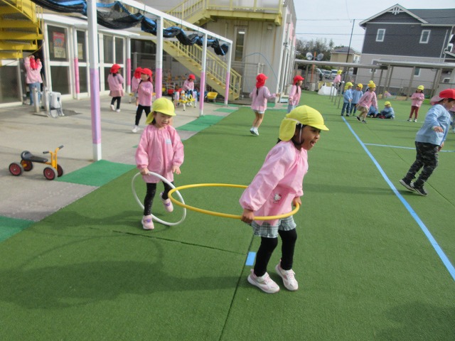 ドッジボールやフラフープ、ブランコなど、園庭はおおにぎわいでした🎵
