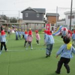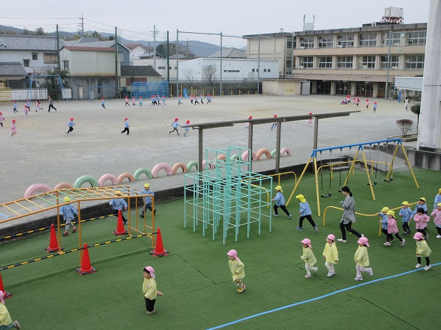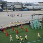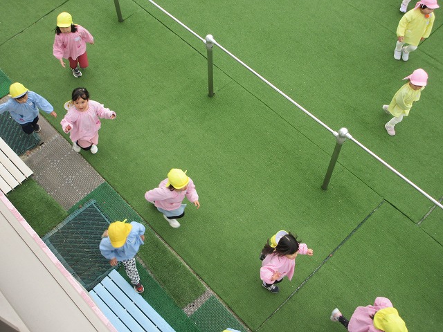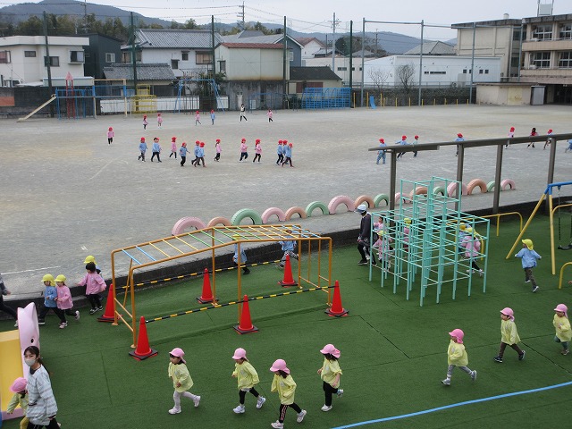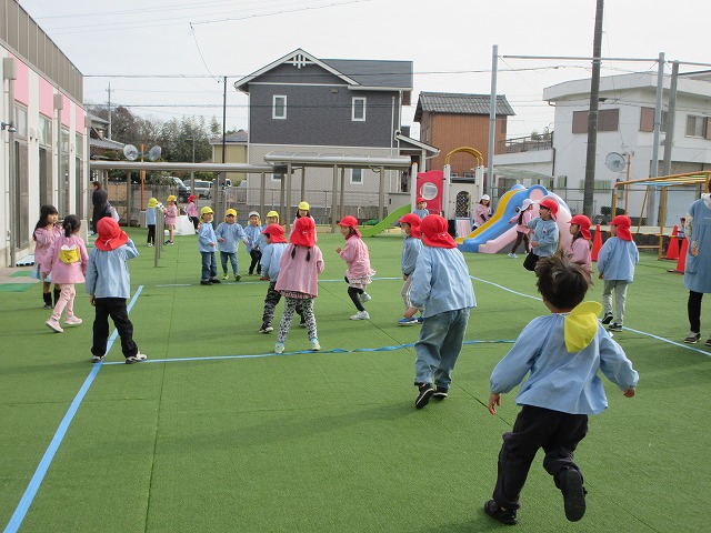 桃組・黄組の子どもたちも負けずに園庭を走っています。