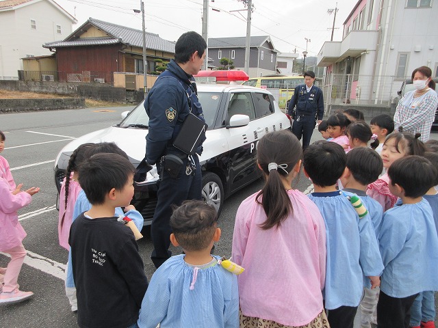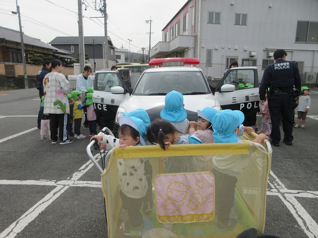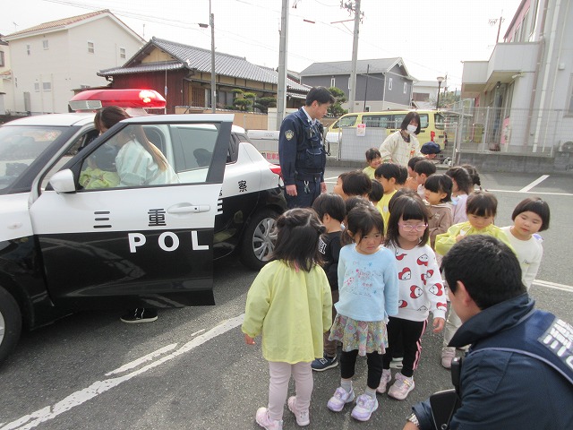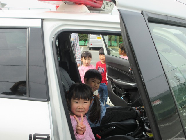 せっかくの機会ということで、子どもたちにパトカーを見せていただくことに。