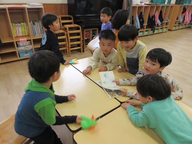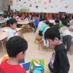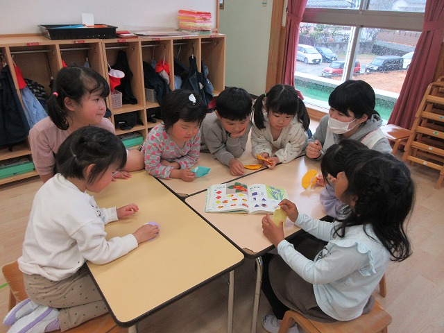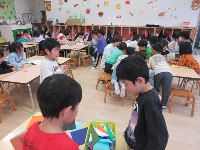 手本を見ながら、どんどんと折り進められる子どもたちがたくさんいます。