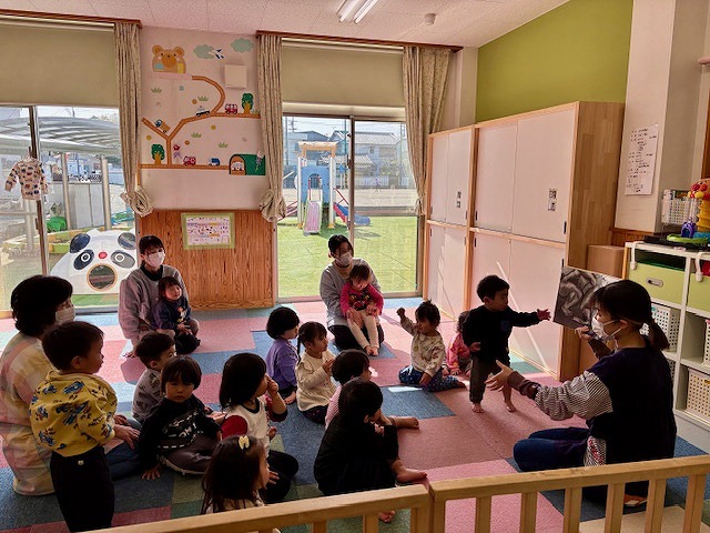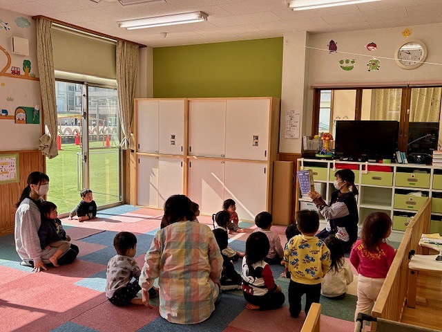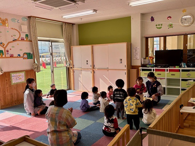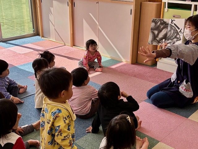 朝のダンス(体操)のあと、お楽しみの絵本の読み聞かせの時間。