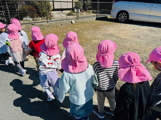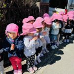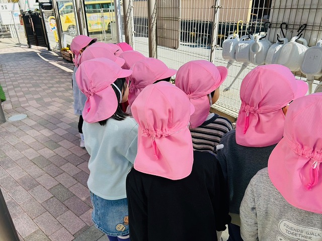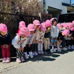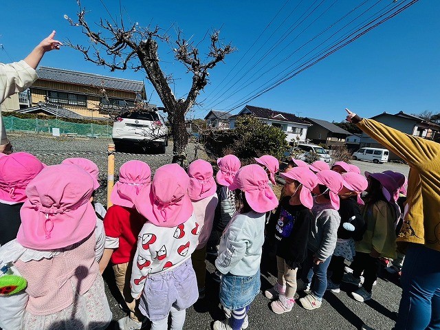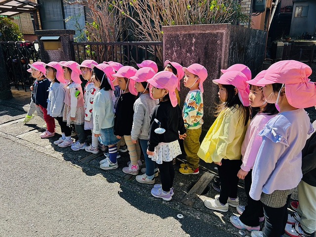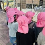 最初に園に咲いている花やサヤエンドウを見た子どもたち。