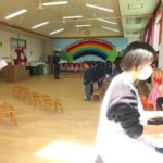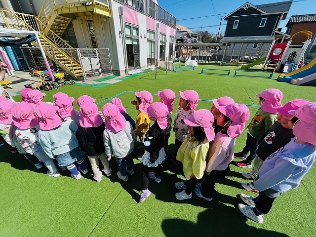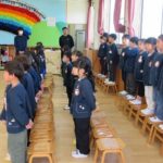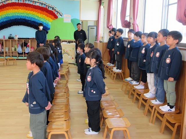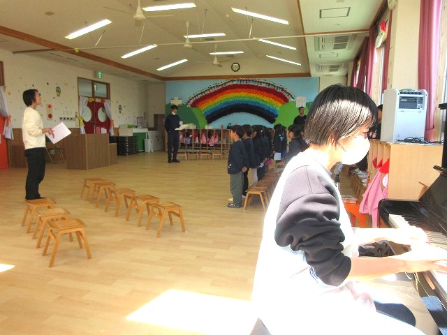 同じ時間に赤組の子どもたちは園服を着て本格的な卒園式練習に集中!