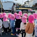点検のために市営テニスコートに停車していた消防車と救急車を見学させていただきました。