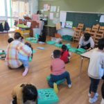 桃組の子どもたちがロッカーとお道具箱のお片付け中でした。