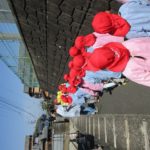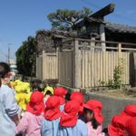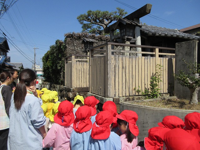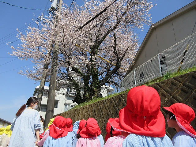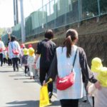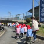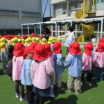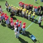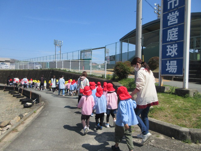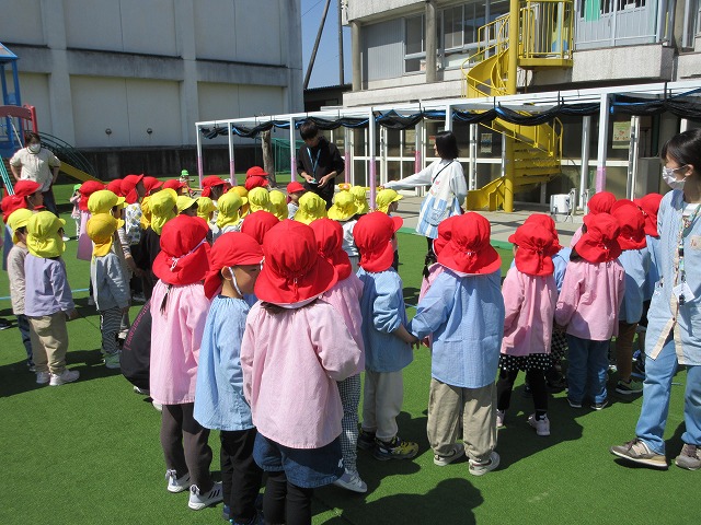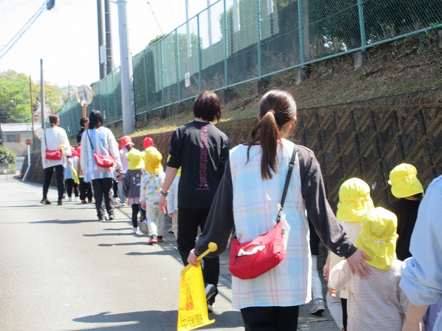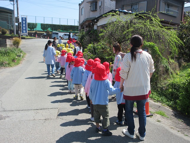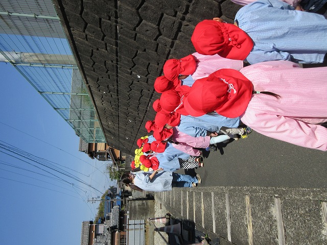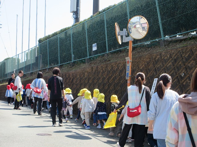 赤組と黄組の子どもたちが散歩に出かけました。