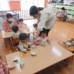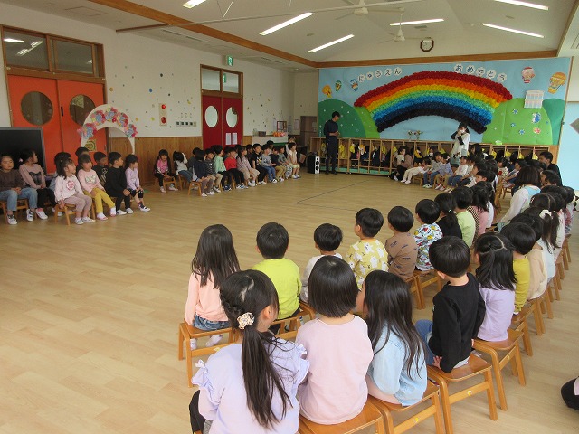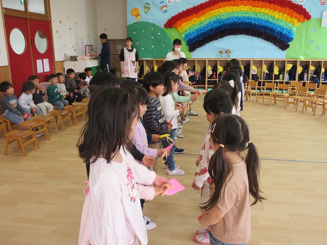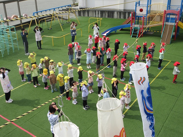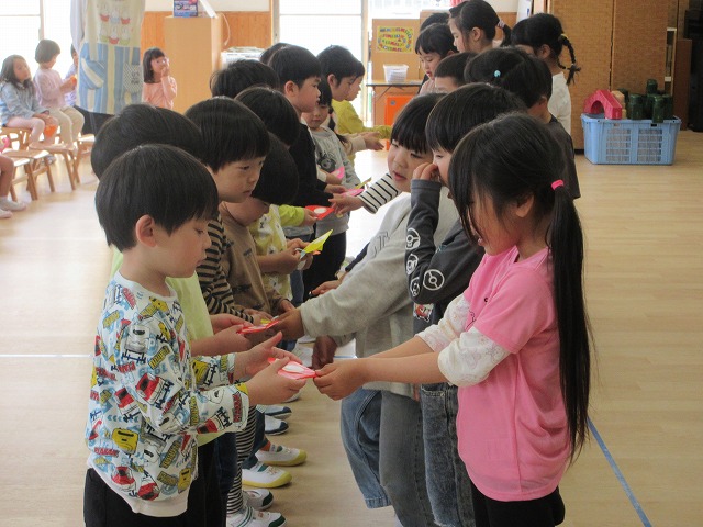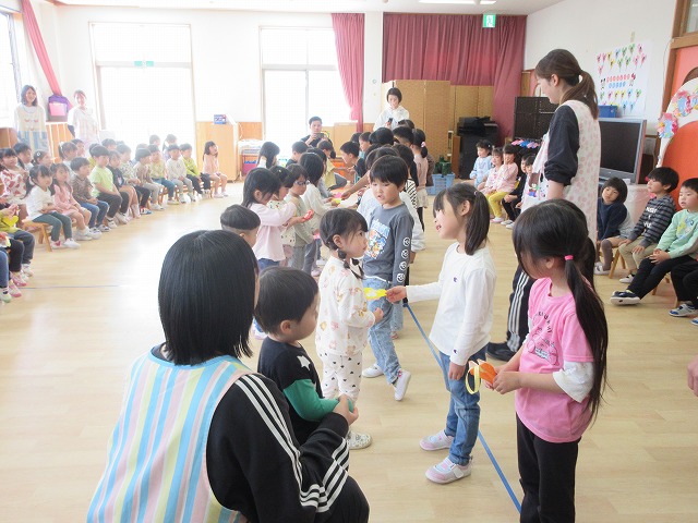 赤組の子どもたちがホスト役になって、黄組・桃組の子たちを歓迎してくれました。