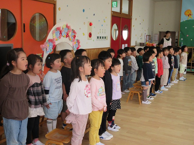 最初に赤組の子どもたちの園歌がホールに響き渡りました。