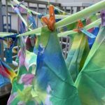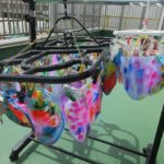カラーサインペンで思い思いの絵や模様を描いて、水の入ったスプレーで吹き付けてみると…