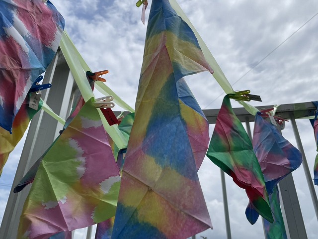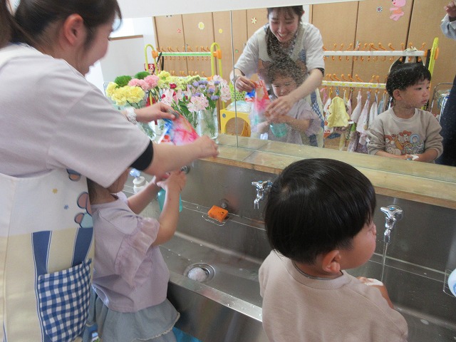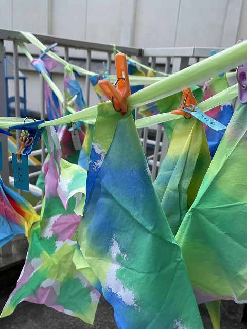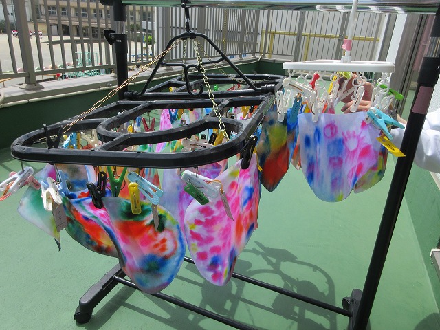 同じ時間に赤組の子どもたちも大判の染め紙に挑戦しました🎵