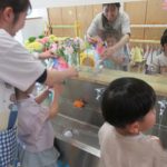 黄組の子どもたちが染め紙に挑戦しました。